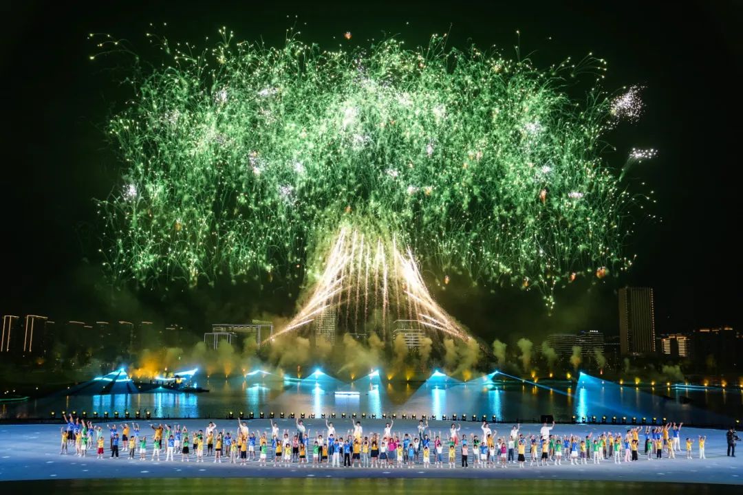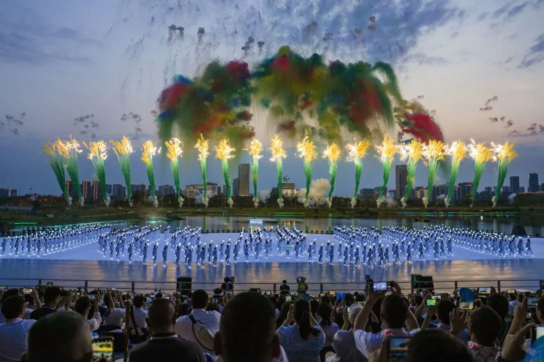 當(dāng)然,喬衛(wèi)口中的“繽紛”,并不僅僅來自于舞臺的光彩奪目、焰火絢爛。碧的水,綠的草,錯落的城市天際線,以及從晚霞到夜幕的天空,都是成就“繽紛”的重要色彩。